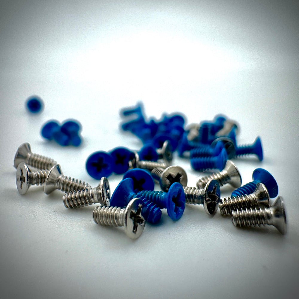 SCREWS! come with 7 silver screws and 1 blue screw to indicate your nose from your tail! These screws are made of stainless steel (not aluminum like most truck screws) so they are SUPER resistant to stripping! No broken heads on the screws either!The blue screws are painted with environmentally friendly paint and baked at 200 degrees to prevent oxidation or peeling! This paint isn’t going anywhere!!